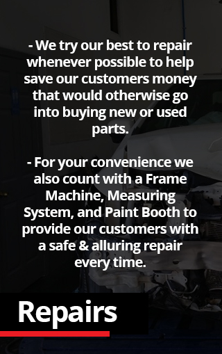 We are a family owned and operated Collision Repair Shop that was founded on October 2014 by a brother and sister. We have over 25 years experience at what we do and we truly enjoy doing it. So please give us an opportunity to be the best part of a bad situation.